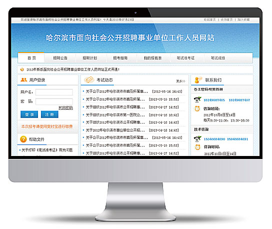 - 考錄主管部門工作人員,在線完成崗位發(fā)布、政策發(fā)布、通知公告、成績發(fā)布、錄用公示。