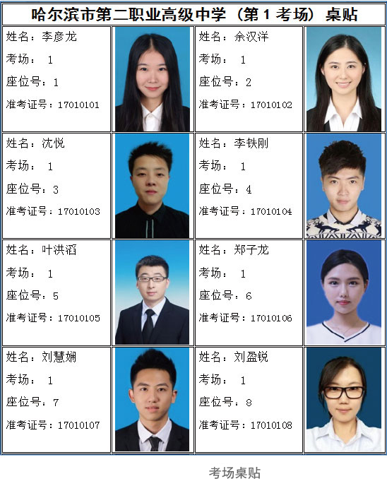 | 考點名稱 | 考點編號 | 考場號 | 座位開始號 | 座位結(jié)束號 | 考試科目 | 人數(shù) |